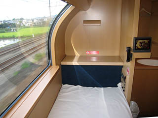 サンライズは、オール2階建て・オール個室です。1人用個室が主体で、2人用個室はツインの各4室のみです。A個室はシングルデラックスが各6室あります。B個室はシングルが最多で、ツイン、シングルツイン、シングル、ソロと多彩です。このうち、シングルツインには補助ベッドがあり、1人でも2人でも利用できます。また、寝台券不要で指定席扱いのノビノビ座席(カーペット座席)もあります。 サンライズ瀬戸/出雲は、それぞれ、7両編成です。東京から岡山までは併結運転し(14両)、岡山で切り離します。その後、サンライズ瀬戸は瀬戸大橋線を経由して高松に向かい、多客期には松山まで延長されます。サンライズ出雲は伯備線経由で出雲市に向かいます。東京-高松の所要時間は9時間半、東京-出雲市は12時間、客車式ブルトレと比較すれば、かなりの韋駄天です。 サンライズゆめは、予備車両を用いて、東京-広島を多客期に臨時列車として走ります。編成はサンライズ瀬戸/出雲と同じ7両編成、所要時間は12時間です。 |