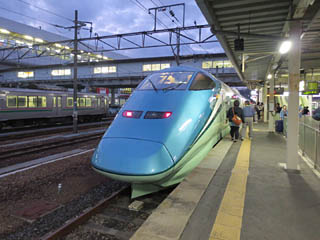 | 2014年7月運転開始、土休日に、福島-新庄を1往復走り、山形新幹線の各駅に停車します。「とれいゆ」とは、「トレイン」とフランス語の太陽を意味する「ソレイユ」の造語です。6両編成(11〜16号車)、全車普通車の指定席で、特急券は、「つばさ」と同じルールで販売されます。@天童 |